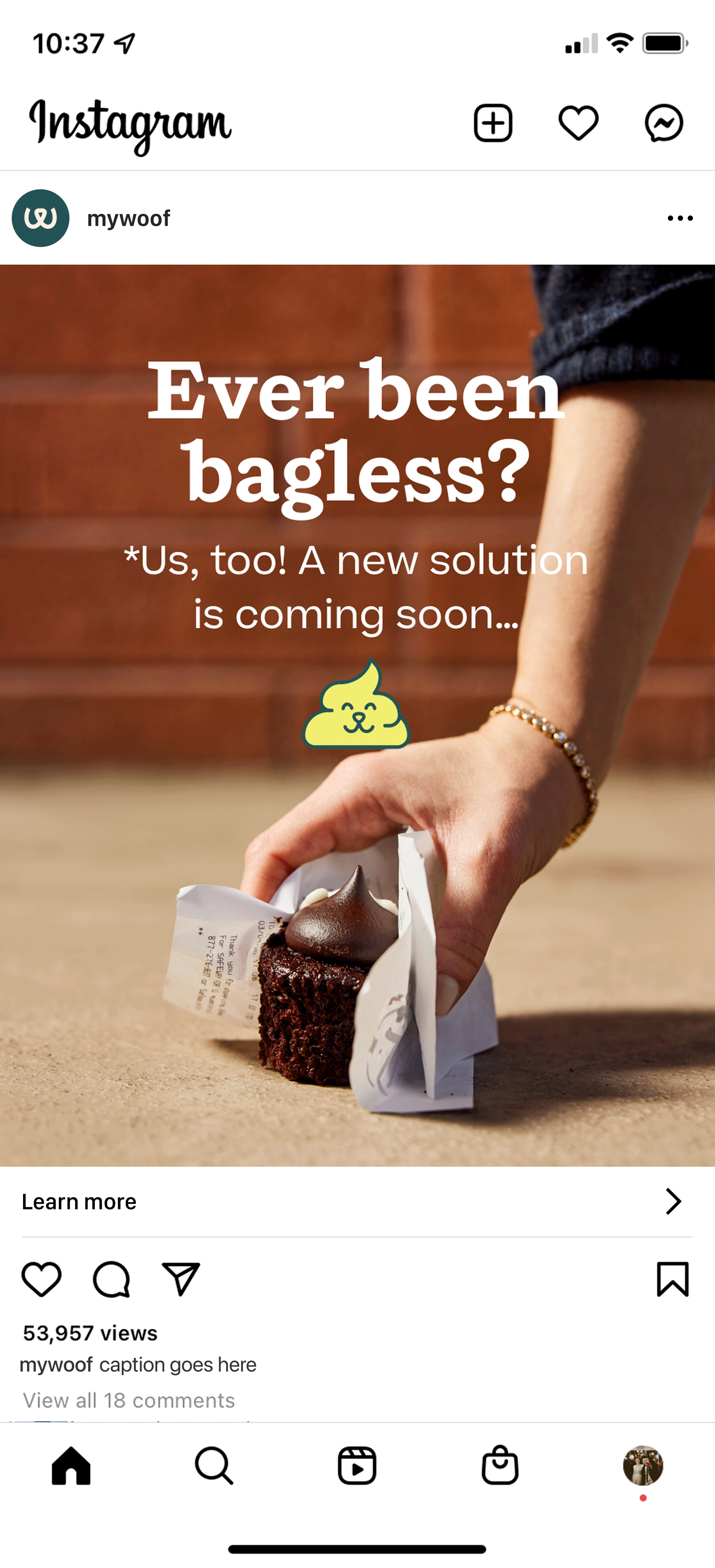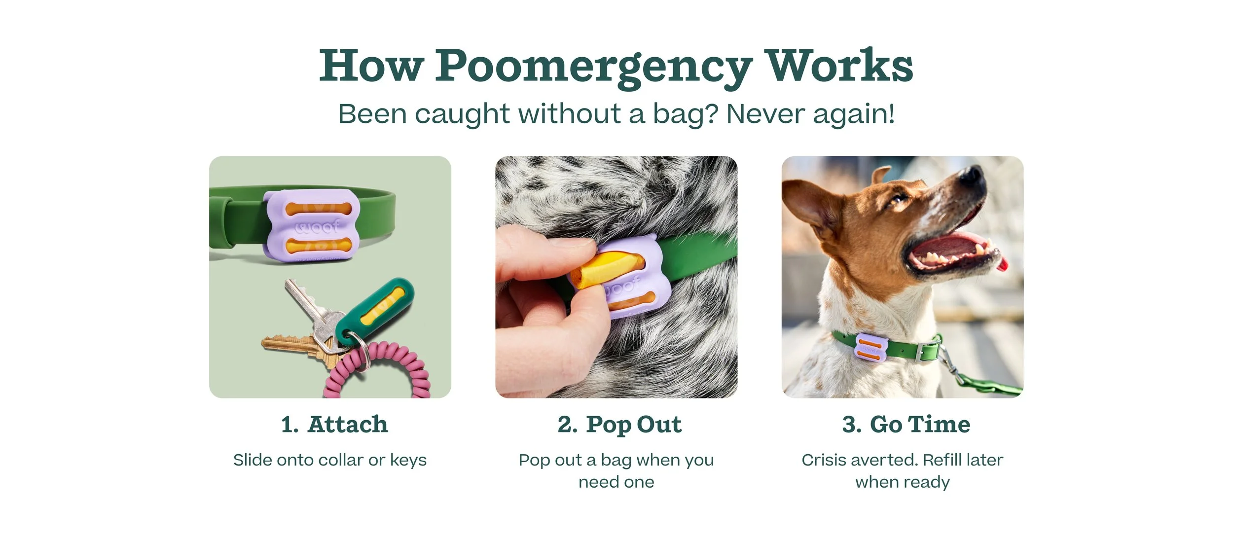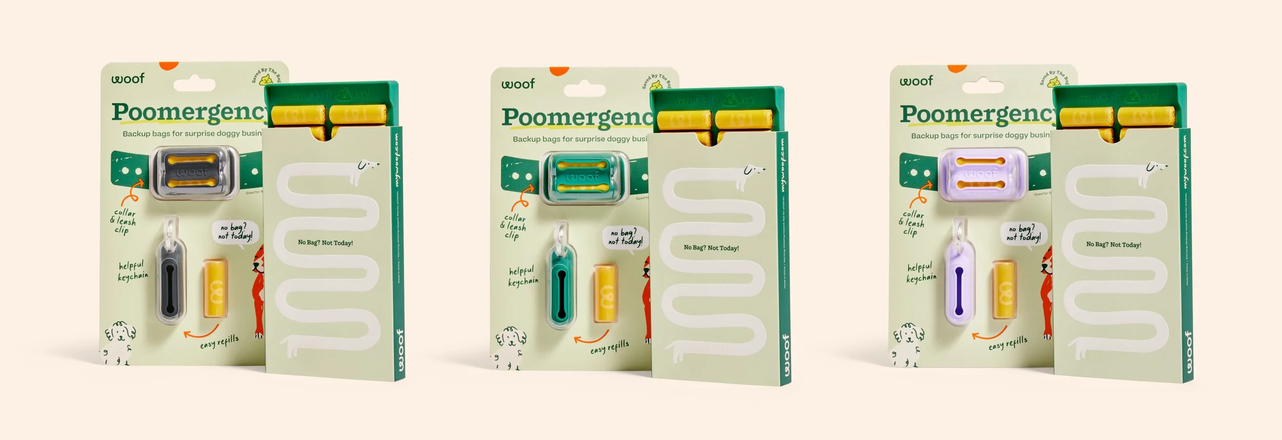 Project Overview: Woof introduced Poomergency, a small collar attachment for dogs that holds backup poop bags for when your regular roll runs out. The campaign leaned into a “tiny but mighty” strategy — celebrating a small product with big impact. It launched with humor and boldness across email, social, and the Woof website, blending playful visuals with functional messaging to introduce “backup bags for surprise #2s.”